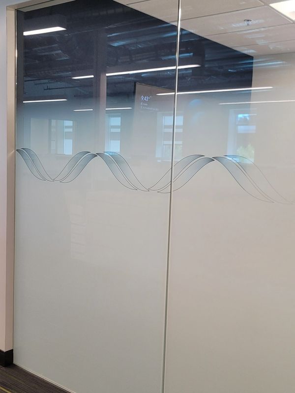 Bespoke film design provides visual privacy, like the Bottom-Up design, while allowing more viewing along the bottom border of the partition glass.