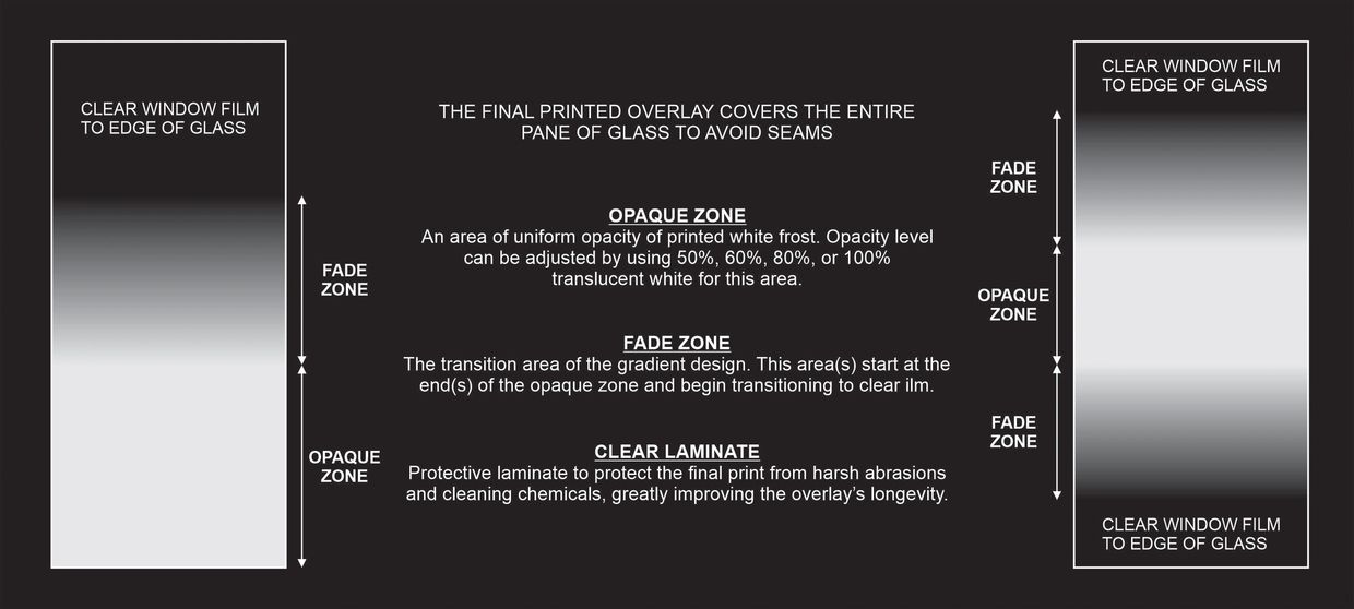 Gradient fades film designs are in high demand due to the way privacy is gradually controlled while providing a cohesive feel between rooms.